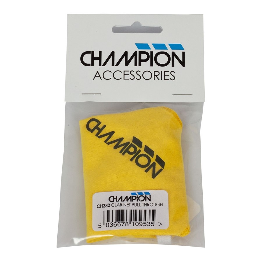 Clarinet Pull Through in Yellow. Yellow microfibre cloth 197 x 197mm, pull-through string with weighted end, 500mm length.