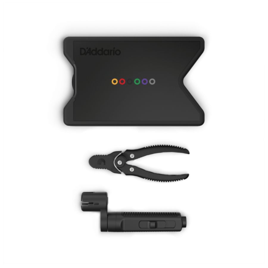 The D’Addario Tour-Grade String Change Kit promises professional string changes in any environment. The string winder utilizes a premium ball bearing socket to easily turn any tuning peg and features a collet design bridge pin puller that captures bridge pins as you remove them. The string cutter features long-lasting hardened blades and compound-action design to provide over seven times the cutting force of standard pliers, making it easy to get through even the thickest strings with ease. Both tools come in a durable, over-molded case, which doubles as a neck rest, so players, luthiers, and techs have everything they need to change strings like a pro.