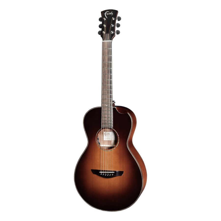 The tonal character will have emphasis on the lower-midrange with a beautifully warm, vocal nature. The Classic Burst models are bound with Solid Macassan Ebony, and use the same high quality timber for the fingerboards, headplates, heelplates, bridges and bridge pins. Faith Classic Burst guitars are complete with a Faith Hardcase.