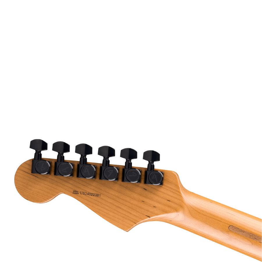 Our popular Modern “C” neck now sports smooth rolled fingerboard edges, a “Super-Natural” satin finish and a newly sculpted neck heel for a supremely comfortable feel and easy access to the upper register. A combination of Seymour Duncan® JB™ TB-4 Bridge and Custom Flat Strat® SSL-6 pickups give this instrument bite and articulation for rock ‘n’ roll styles. An upgraded string-through body hardtail bridge gives stability, increasing sustain, clarity and high-end sparkle.