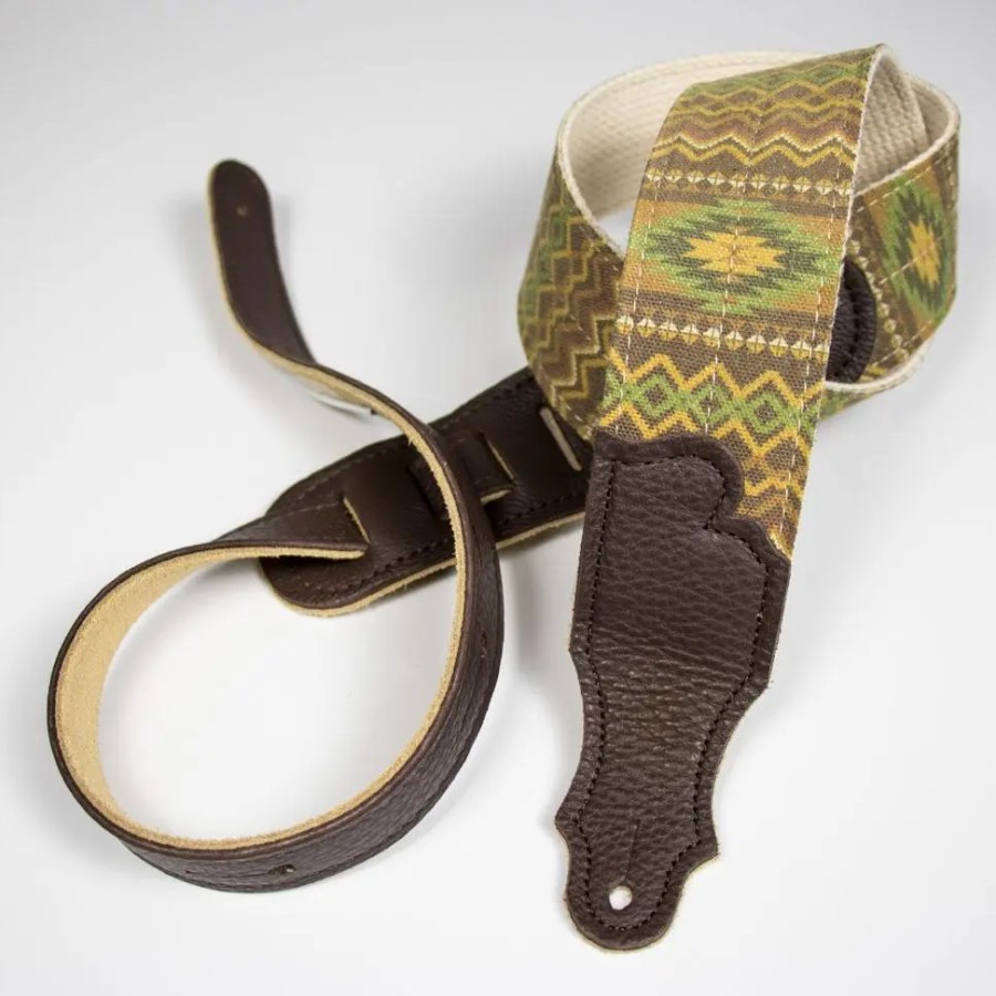 Franklin 2″ Olive Aztec Nat Cotton/Brown Leather Guitar Strap