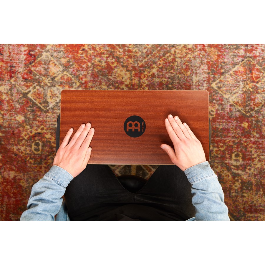 These models are designed to bring the striking surface up nearer to the player, for a more upright playing style. The sound projects forward into the audience! The Turbo Slap-Top Cajon is slightly bigger for more volume and it comes with snares on both sides. Here the snares also feature a forward sound projection.