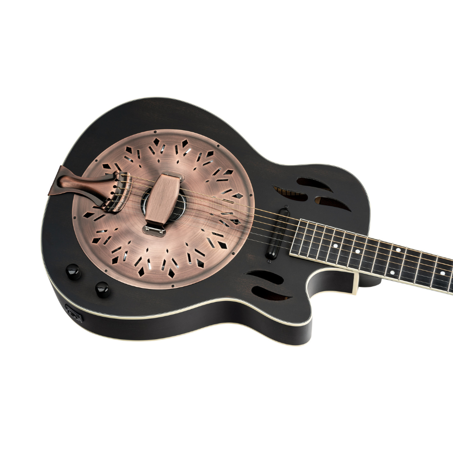 Our new Americana Series blends the traditional look and feel with contemporary appointments, just like its musical roots. A distinctive cone resonator that is integrated into each of both guitars gives them their characteristic overtone-rich twang. Volume and tone controls are included on the magnetic lipstick pickup-powered guitars. The antique finish of the aluminum cone emphasizes the classical look.
