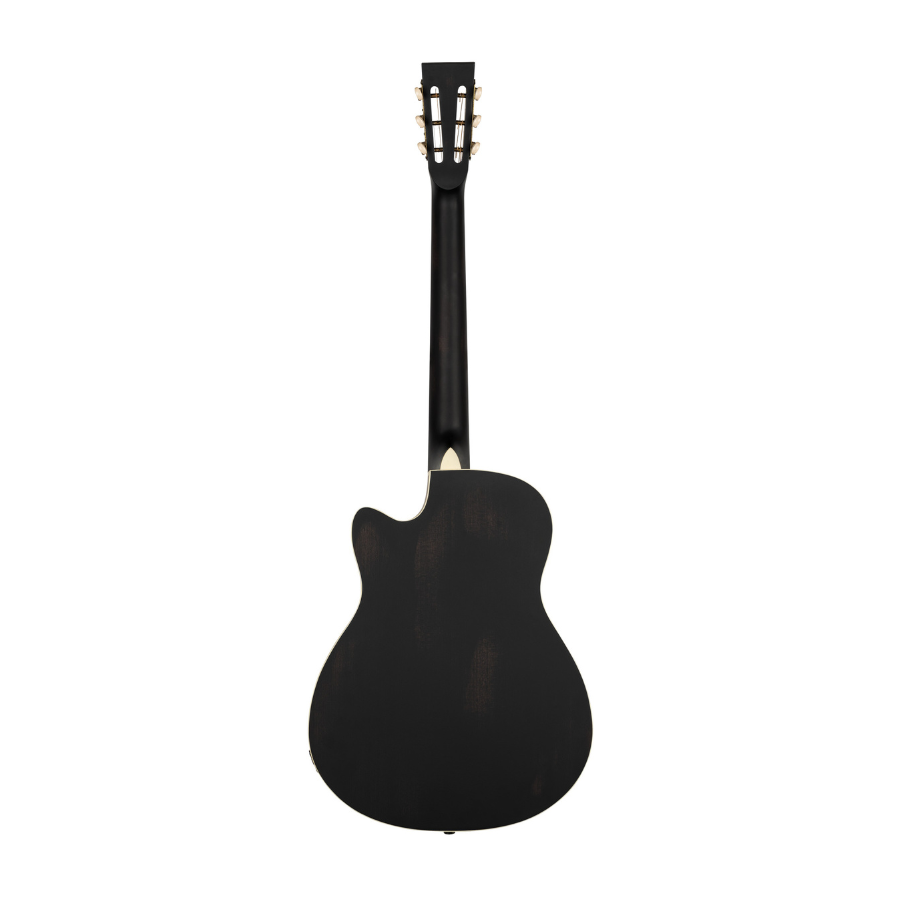 - Back & sides: Mahogany, distressed satin black finish