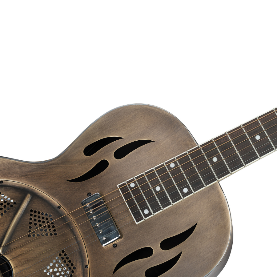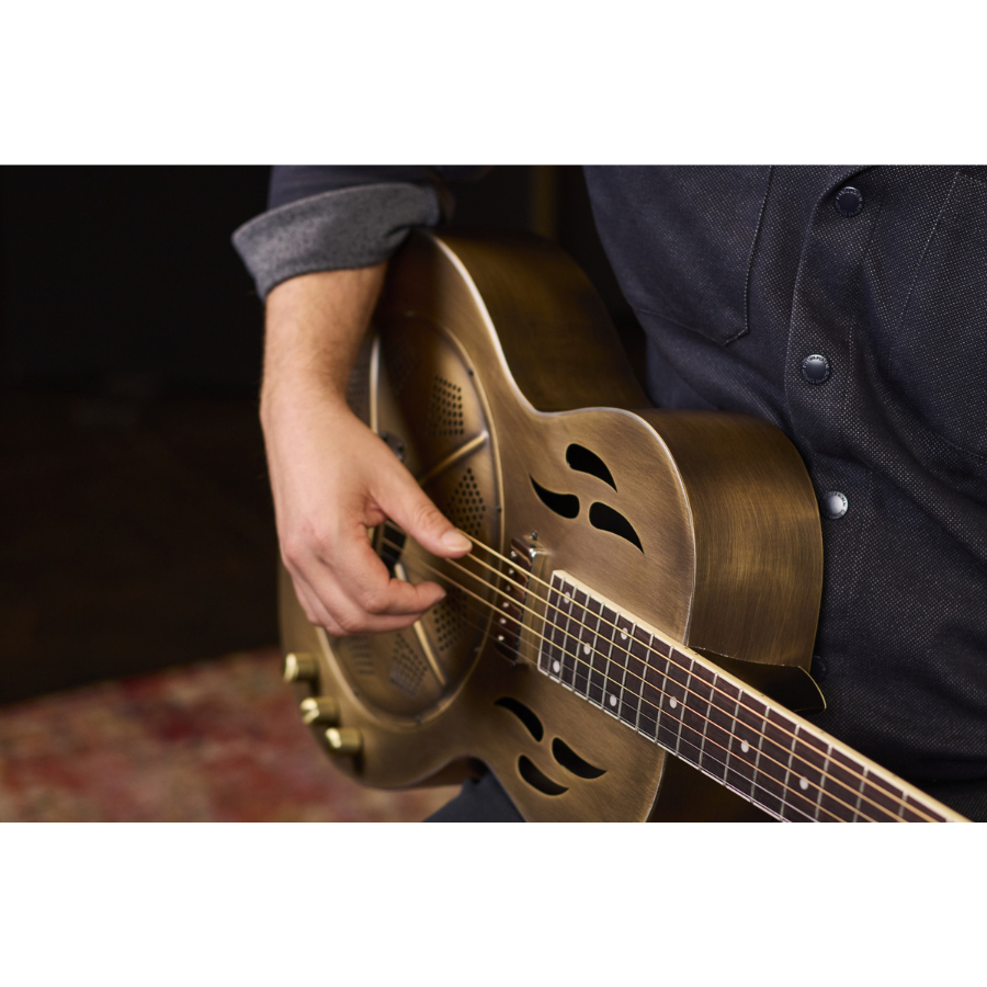 Our resonator guitars combine the character of classic Americana instruments with modern features. Whether with a solid mahogany or copper top, each model offers a distinctive look and a rich, overtone-filled twang.