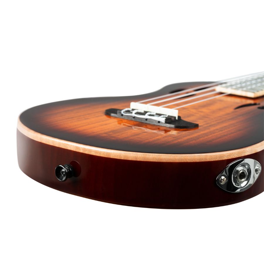 The TourPlayer Ukulele Series is the ultimate stage ukulele, inspired by the design of the successful TourPlayer Guitars. With a tenor size for a more guitar-like feel, these ukuleles feature a solid chambered Okoume body with cutouts for enhanced resonance and reduced weight. Each model is equipped with the Ortega MagusX/U preamp system, offering rechargeable power and USB-C compatibility. Each ukulele comes with a TourPlayer bag, perfect for musicians on the go.