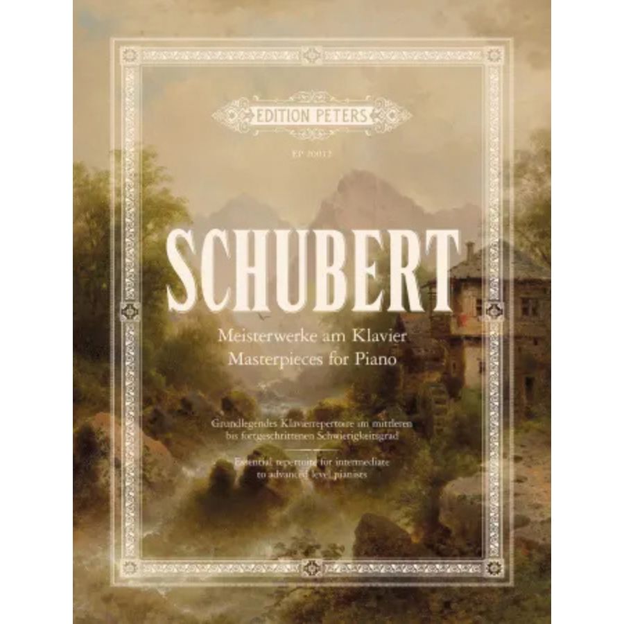 The Composer Masterpieces series presents superb collections of core repertoire by the great piano composers. These beautifully produced, carefully curated editions provide pianists with an excellent overview of each composer and should be an essential part of all players’ libraries. Suitable for intermediate to advanced level players. Schubert: Piano Masterpieces brings together original piano works by Franz Schubert, suitable for intermediate to advanced level players. Arranged in progressive order, the collection features a mixture of favourites and lesserknown works, with a complete sonata – Sonata in A major, D664 – at the end of the book. The cover features Wasserfall mit Mühle by Austrian painter Albert Rieger (1834–1905). Die Reihe Meisterwerke am Klavier bietet herausragende Sammlungen des Kernrepertoires großer Klavierkomponisten. Diese wunderschön gestalteten, sorgfältig kuratierten Ausgaben ermöglichen Pianistinnen und Pianisten einen umfassenden Überblick über das Schaffen des jeweiligen Komponisten und sollten in keiner Notensammlung fehlen. Geeignet für mittleres bis fortgeschrittenes Niveau. Der Band Schubert: Meisterwerke am Klavier vereint ausgewählte Original-Klavierwerke von Franz Schubert in einer Ausgabe, welche bestens für Klavierspielende auf mittlerem bis fortgeschrittenem Spielniveau geeignet sind. Enthalten ist eine spannende Mischung aus beliebten und weniger bekannten Stücken, angeordnet nach aufsteigendem Schwierigkeitsgrad. Den Abschluss bildet eine vollständige Sonate – die Sonate in A-Dur D664. Das Titelbild zeigt den Wasserfall mit Mühle des österreichischen Malers Albert Rieger (1834–1905).