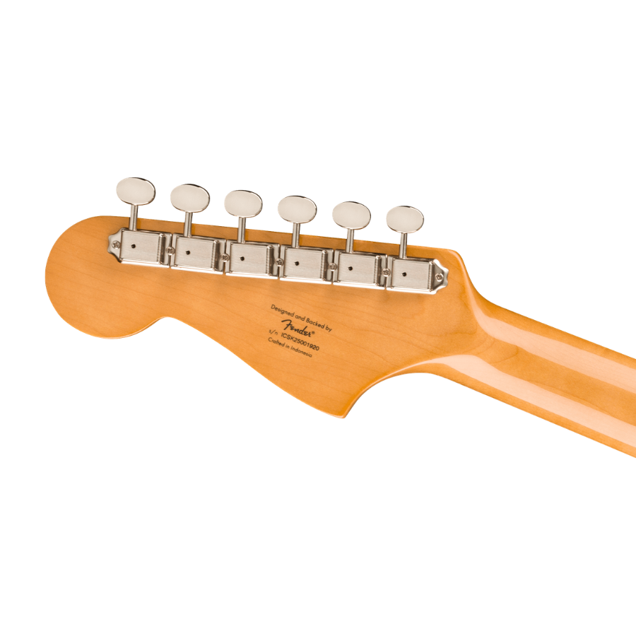 The Classic Vibe ’60s Jazzmaster® is a faithful and striking homage to the iconic Fender favorite, producing undeniable Jazzmaster tone courtesy of its dual Fender Designed™ alnico single-coil pickups. Player-friendly features include a slim, comfortable “C”-shaped neck profile with an easy-playing 9.5″-radius fingerboard and narrow-tall frets, a vintage-style tremolo system for expressive string bending effects, and a floating bridge with barrel saddles for solid string stability. This throwback Squier model also features 1960s-inspired headstock markings, rich-looking nickel-plated hardware and a slick vintage-tint gloss neck finish for an old-school vibe.