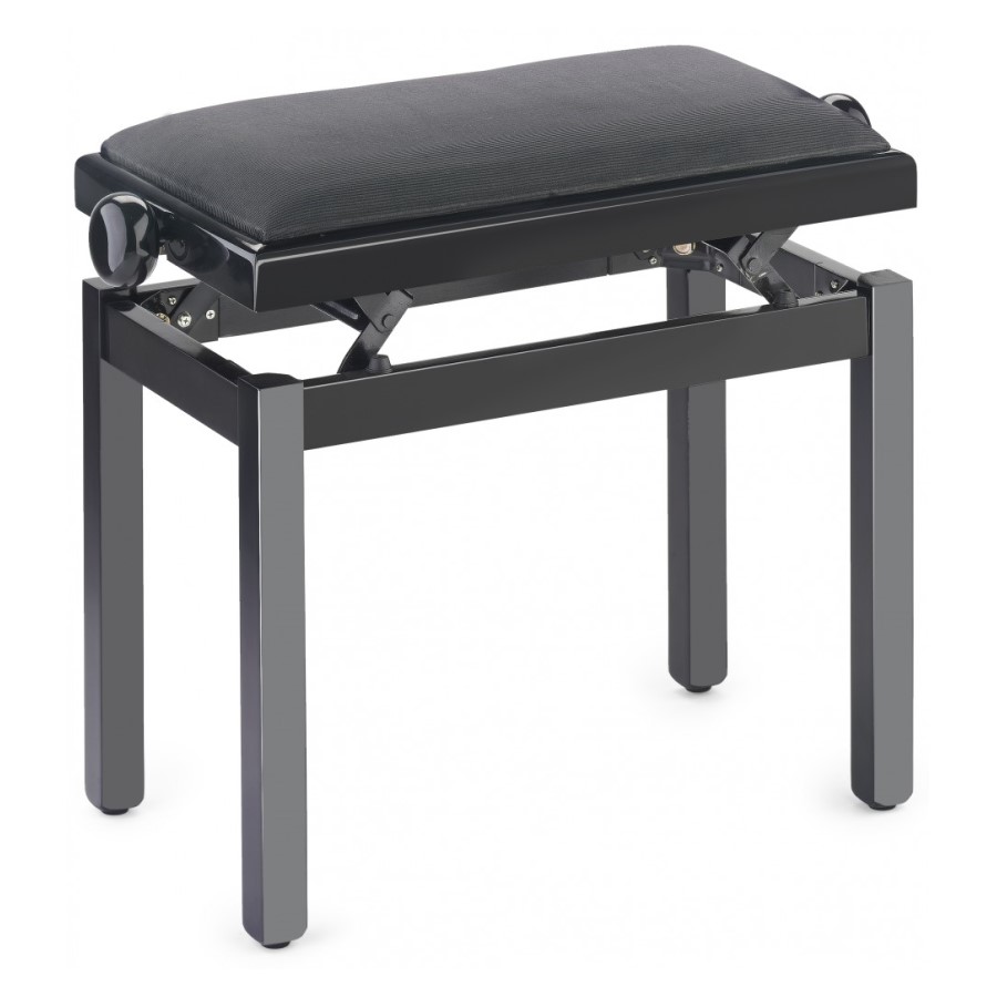 Budget adjustable piano stool in a gloss black polished finish with a black velvet top.